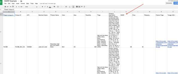 增加MSRP很简单。只需在上传产品的批量编辑文件中添加MSRP一栏信息并填入对应的价格即可: