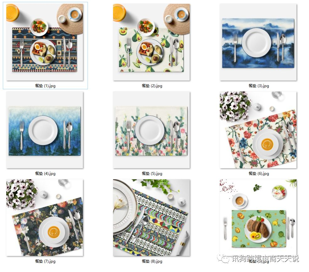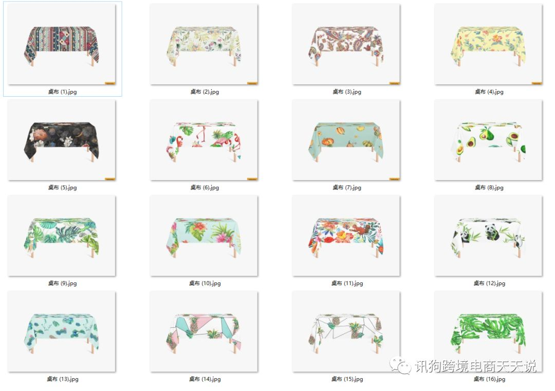 连衣裙,袜子,桌布,靠枕,地垫,泳衣,眼罩,雨伞等等。