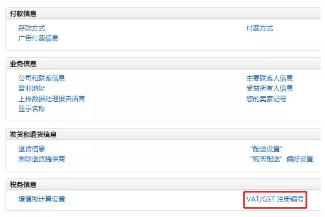 1.打开卖家平台账户信息,选择“VAT/GST注册编号”