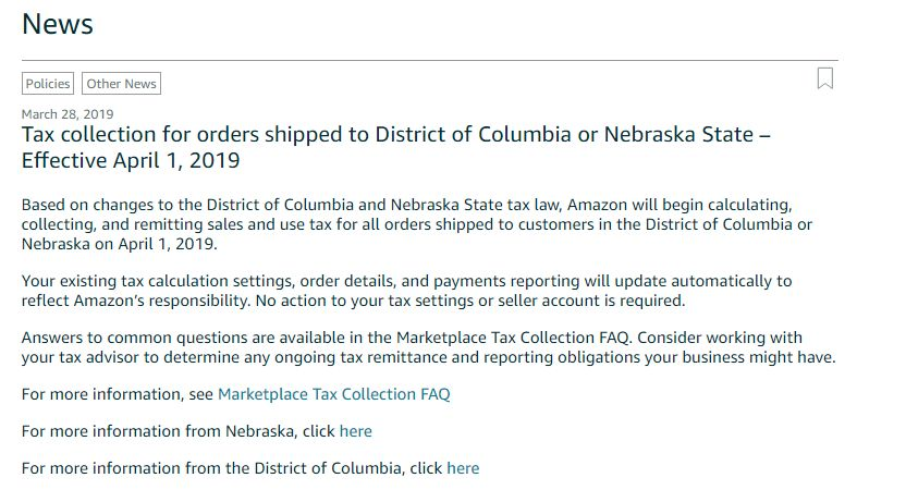 这个消息可不像之前闹得沸沸扬扬的加州征税一样,那次只是亚马逊需要收集符合征税条件卖家的信息,提前放出的通知罢了。