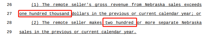 这样看下来我们最可能被税的情况也就是第二种情况了,而这次要求征税的两个州——内布达斯加和哥伦比亚特区同样也是规定了远程销售额机制