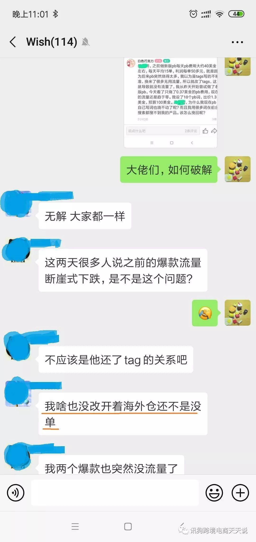 于是在一个资深wish卖家群里和大家讨论,