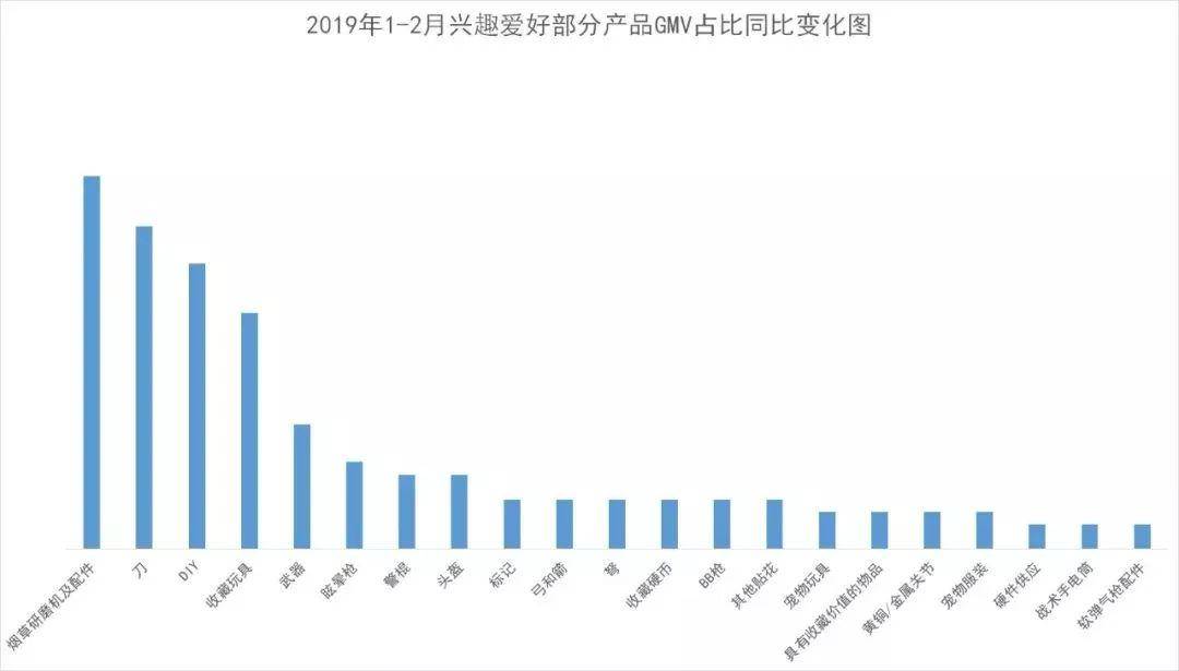 除了上述的产品外,2019年1-2月,烟草相关的配件、刀具、DIY产品、收藏玩具等都已经表现出了较好的同比增长,GMV占比同比明显提升。随着季节变化、气温上升,园艺类产品及户外产品的增长也将非常可观。