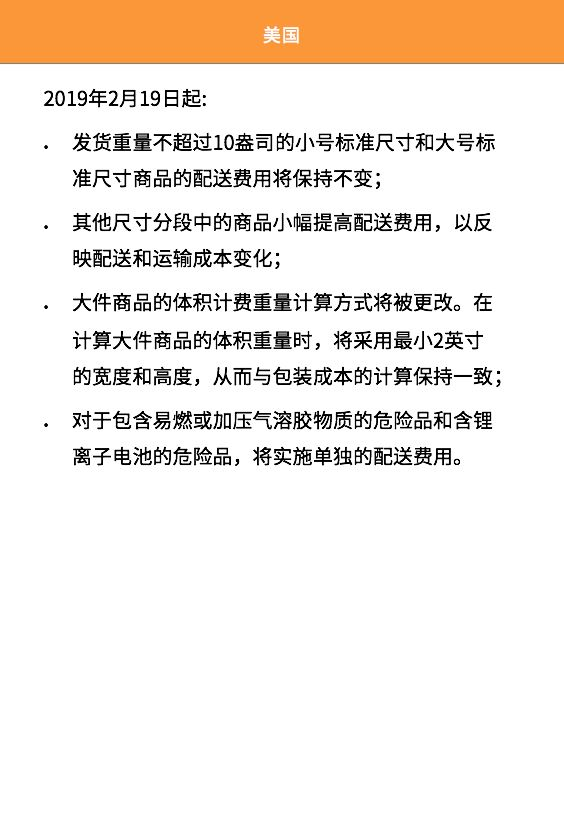 · 对于总销售价格不超过$10的商品,亚马逊会将美容化妆、个护健康和母婴商品(母婴服装除外)的销售佣金百分比从15%降至8%。对于总销售价格高于$10的商品,亚马逊将继续收取15%的费用;