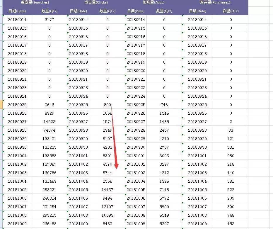 今天主要是给大家介绍一个吉祥三宝卖家常用的上首页的方法,也就是通过流量点击然后加购物车。简单来说,因为吉祥三宝需要的量简直是巨大,所以放量的话就算他们有足够的库存去放,也很难找到能够吸收这么多吉祥三宝产品的放量渠道。所以说,点击加购就成了他们用的最多的方法。下面是一个曾经的吉祥三宝爆款产品,他们针对核心关键词每天的一个加购的数量截图,大家可以看看: