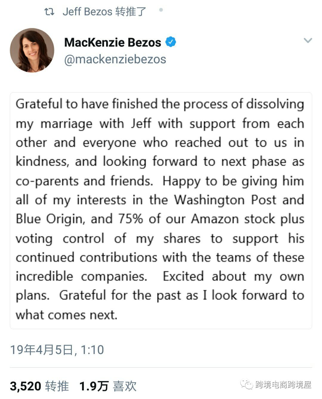 前妻分走2400亿!姐夫保住亚马逊控制权
