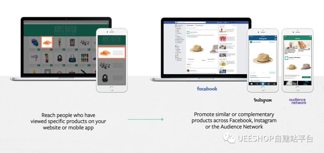 随着您的Ueeshop独立站及Facebook店铺落成,Facebook动态产品广告将无缝地被使用。如此,由新老客户带来的流量定会源源不断、滚滚而来!