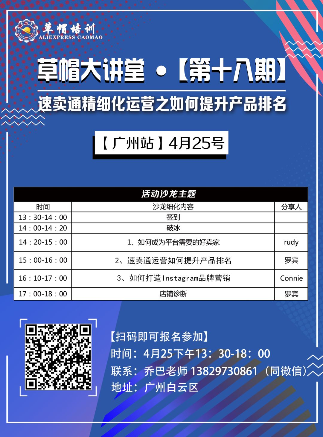 【广州专场】速卖通站精细化运营之如何提升产品排名——草帽大讲堂第18期
