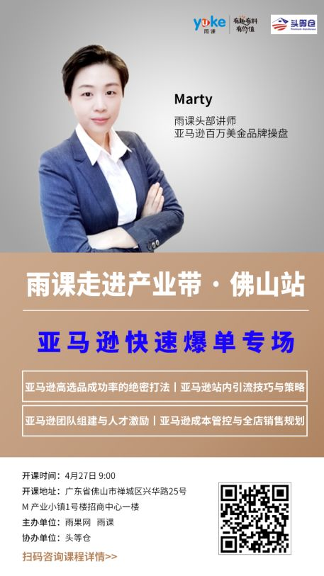 快拿小本子记下来,四个大方向不能偏且缺一不可。然而文章篇幅有限,所述不能全面。有更多疑问的转型卖家,可以在4.20/4.25《亚马逊快速爆单专场》—佛山站找到答案,本次课程从科学选品提高成功率、做营销推广快速出单、成本管控实现快速盈利、组建团队吸引核心人才四个方面,实现传统企业实现快速转型与出单!