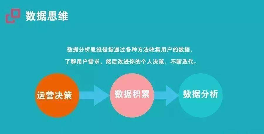 数据分析思维是指通过各种方法收集用户的数据,了解用户需求,然后改进你的个人决策,不断迭代。数据分析不能为了分析而分析,而要将落脚点放到业务、产品和用户上。比如产品经理,数据分析应该帮助产品经理不断优化产品设计和迭代,驱动产品和用户增长。