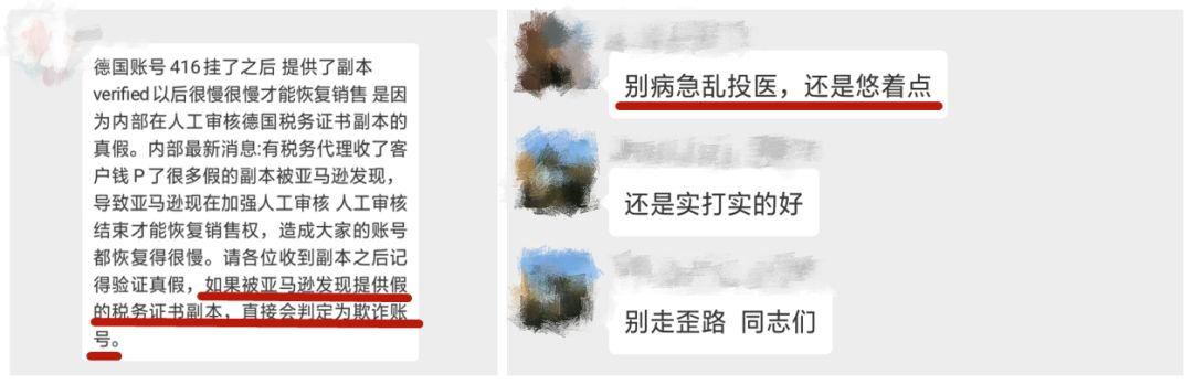 在这里,小编也提醒各位卖家朋友们,千万不要去选择这种手段去解封自己的店铺,运气好说不定花几个小钱你就解封了,运气不好,被亚马逊发现提供假的税务证书副本,直接被判定为欺诈账号,到时候,造成的损失就不可估量了!