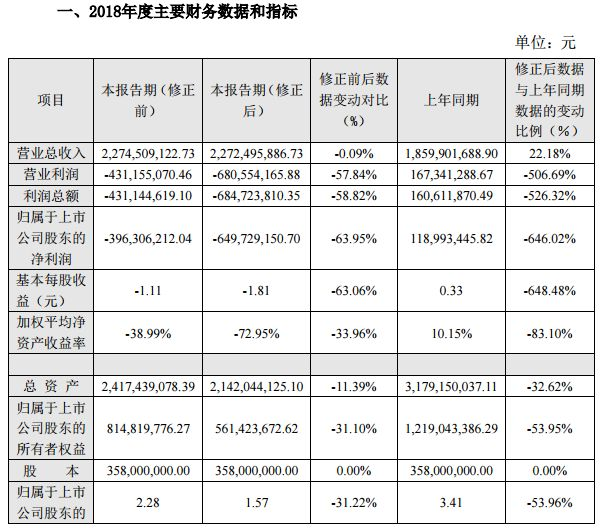 浔兴股份表示,修正后浔兴股份的营业利润、利润总额、归属于上市公司股东的净利润和基本每股收益较修正前分别下降了57.84%、58.82%、63.95%、63.06%。