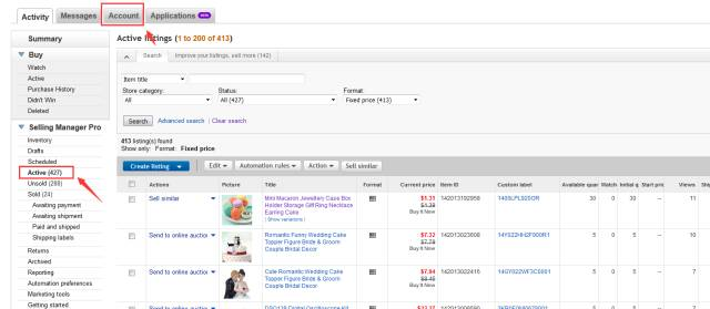 第一步:点击“My eBay”页面左侧边栏中“Selling Manager”模块下的【Active】,进入“出售物品”页面