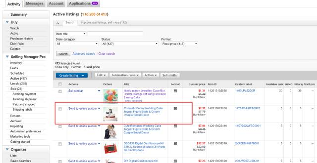 第三步:在eBay搜索页面中自己所有的刊登物品里搜寻到需要查看的物品,再点击此物品的图片或标题,就能够直接进入该物品的刊登页面。