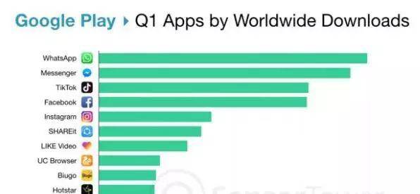 在谷歌Play商店里,TikTok仅次于WhatsApp和Messenger,排名第三,上季度的下载量超过1.5亿次。