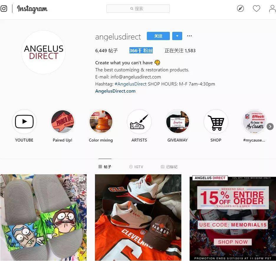 利用社会媒体和网络的优势永远都不过时。Angelus Direct的Instagram账号有36.6万名粉丝,YouTube有28.7万名粉丝。他们能源源不断地产生销量。