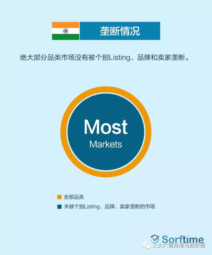 在Sorftime数据看板中看对印度站所有类目,按照市场容量这一维度进行降序排列,同时观察Listing 垄断系数,发现即便是印度市场销量最高的10个类目,市场Listing垄断系数都不高。