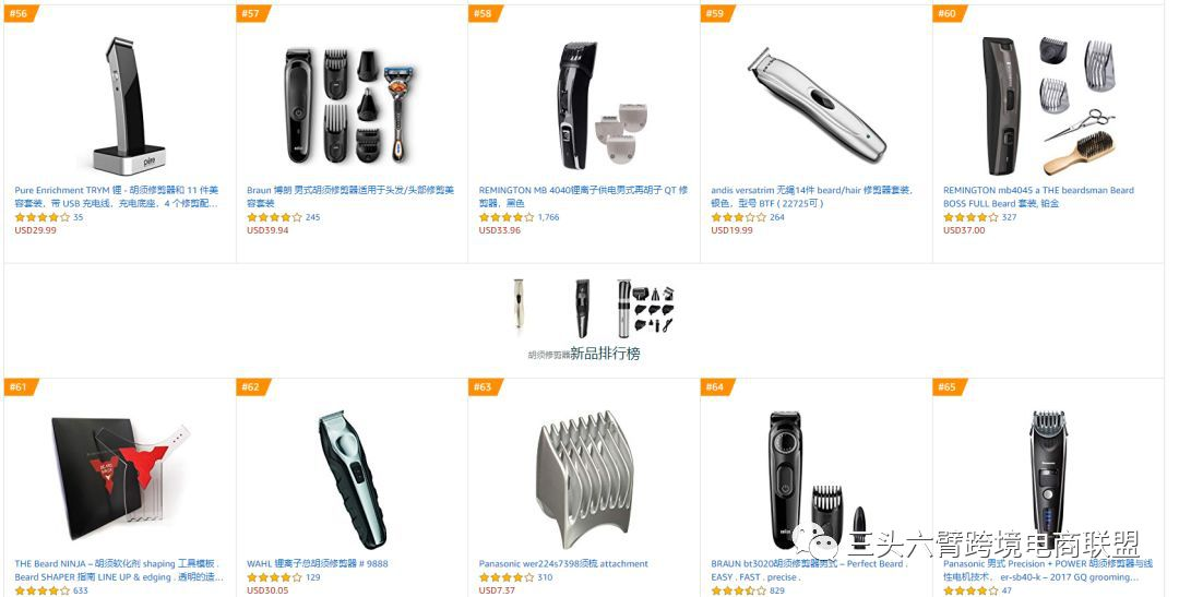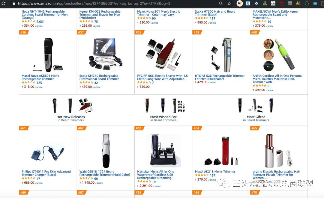 上面两张图分别来自亚马逊美国站和印度站剃须刀best sellers 中 TOP 56-65 的产品分布:
