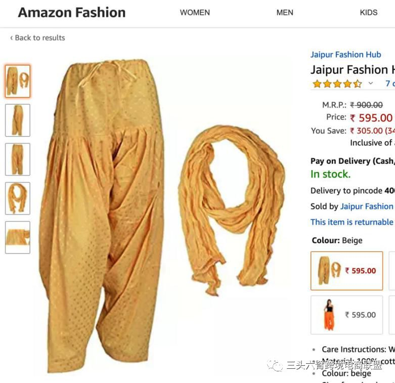 图片来源亚马逊印度站围巾小类,Top100只有78个产品