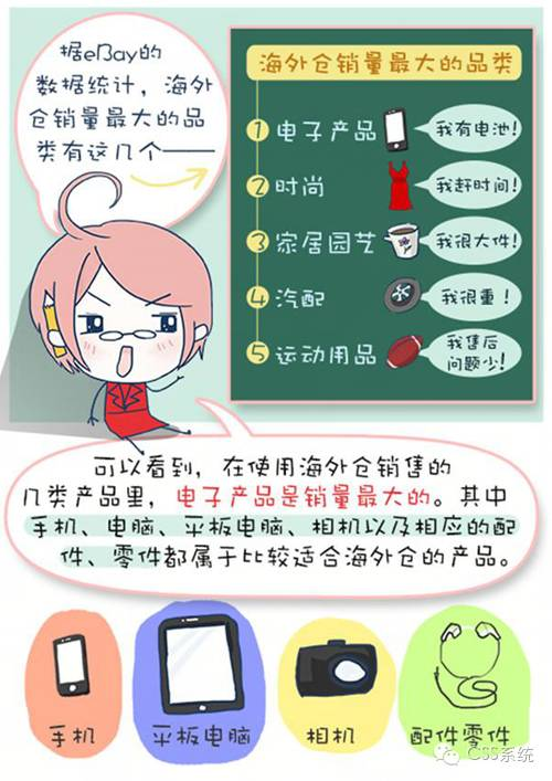昨天听了Aimee讲的海外仓优势, 大家是不是有点蠢蠢欲动呢? 不过今天有很多童鞋又有疑问了:我该选什么产品做海外仓呢? 电子、家居、衣服?还是都用海外仓呢? 哎呀呀, 好纠结!不要焦躁, Aimee今天就以eBay论坛亿老师分享的图解形式,说说什么样的产品适合海外仓。