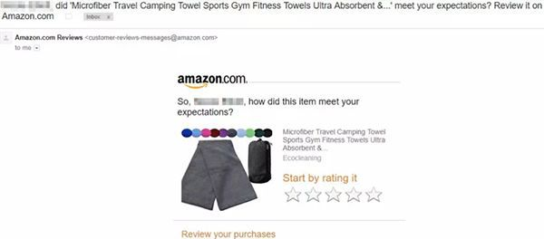 而对于评价商品的邮件(索评邮件),亚马逊是挑着产品给客户发的,换句话说大部分的卖家都没有机会享受到这种礼遇。索评邮件长这样(如下截图)