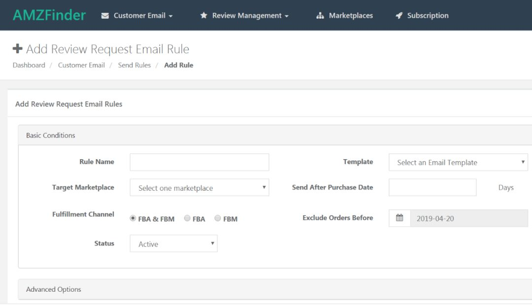 邮件规则中可以根据订单日期,发货方式,及ASIN排除等方式给不同用户发送不同邮件。