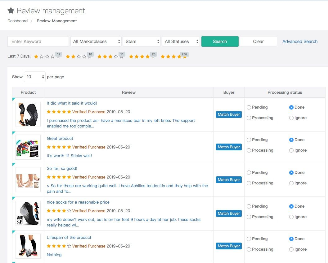 6、AMZFinder的评论管理功能,可以每天自动化抓取所有店铺的Listing评论,统一显示和管理,最新评论一目了然,收到差评可以第一时间跟进处理。