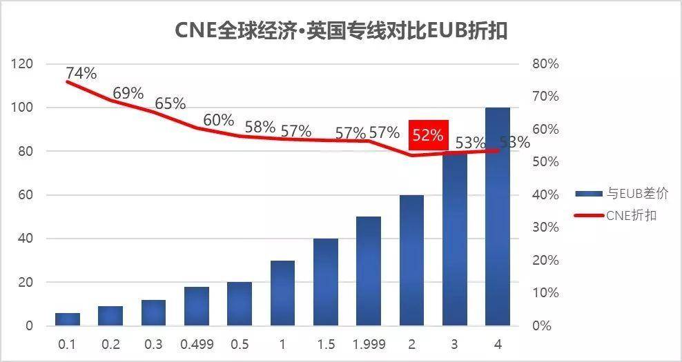 无论是票费还是公斤费,CNE全球经济·英国专线均大幅优于EUB!