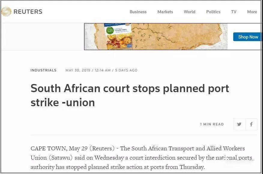 开普敦,5月29日(路透社)报道 - 南非运输和联合工人联盟(Satawu)周三表示,法院要求停止港口罢工行动。