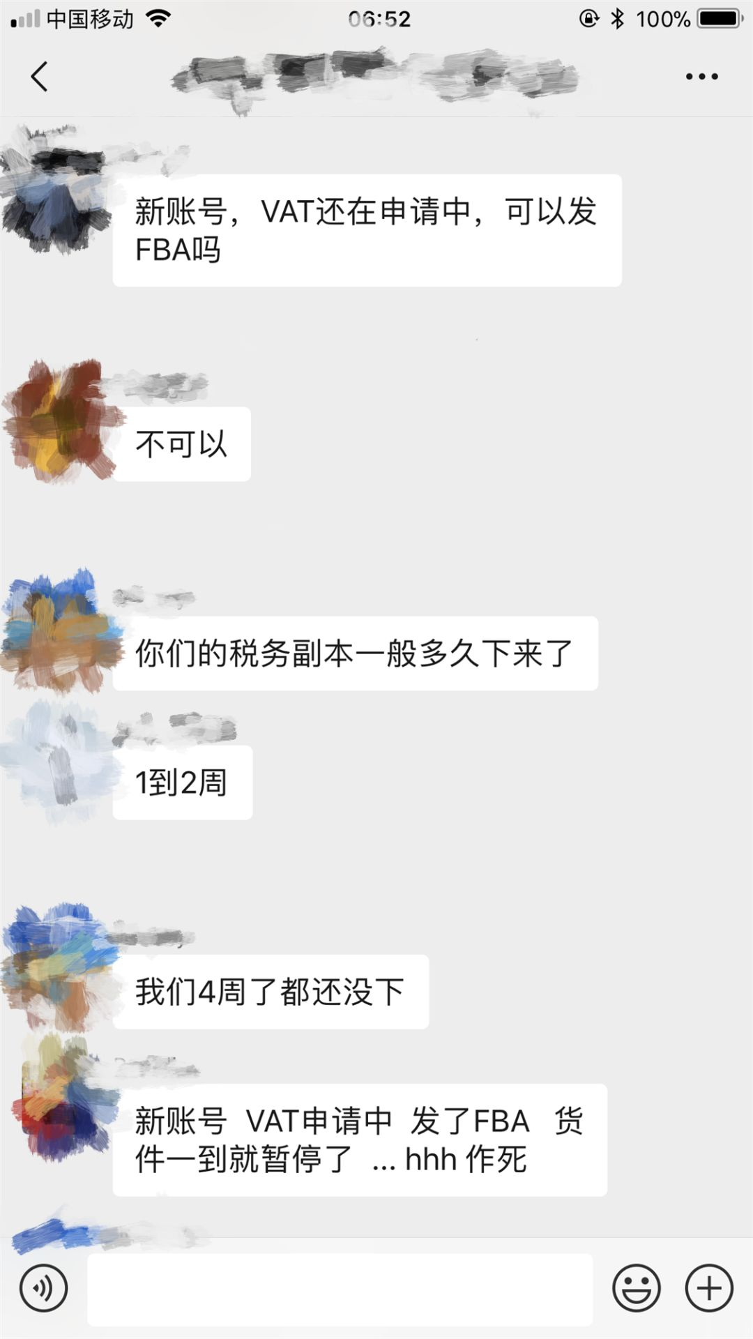 亿恩网还需要提醒广大卖家,VAT正处于申请状态时,最好不要发FBA。一位卖家就因为违背了这个规定,发的货物刚到账号就被暂停了。