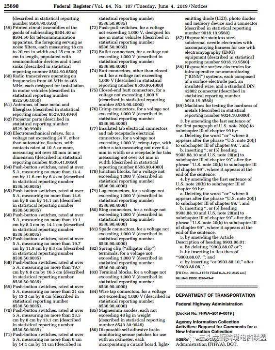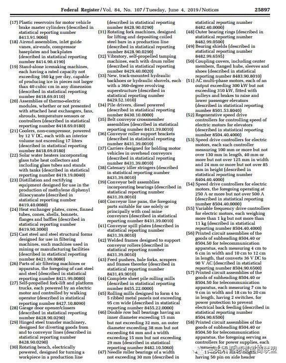 公告原文地址及清单目录:https://www.govinfo.gov/content/pkg/FR-2019-06-04/pdf/2019-11573.pdf