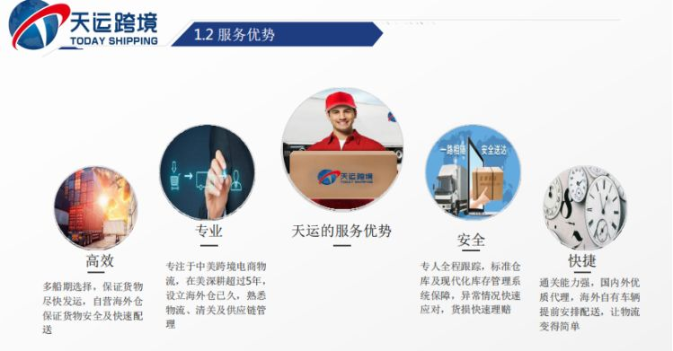 相比于市面上其他海外仓企业,天运跨境设立有仓储、运输、维修等若干部门,将具体工作细化,让服务更加细致且高效。与此同时,天运跨境在美国西部和美国东部都设有自建仓库,辐射美国主要商区,能较大程度为卖家节约成本。比如,美国西部仓库距离安大略机场和长滩码头不到一小时的车程,而美国东部仓库则是临近纽约港,周围有众多FBA仓库,切切实实做到为卖家提供高效、专业、安全、快捷的物流服务。