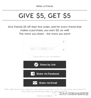我们必须给客户与他们的朋友分享产品的理由,而推荐奖励是最有效的分享理由,无论是折扣、现金、积分、赠品或是其他形式的奖励。