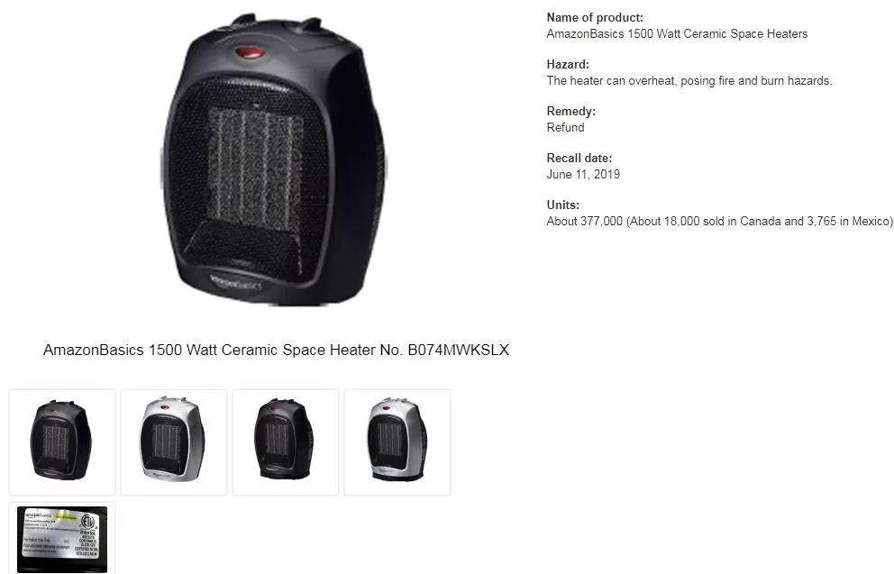 安吉从外媒了解到,亚马逊正在召回大约37.7万件陶瓷空间加热器(space heater),因为这些空间加热器在使用过程中可能会过热、引发火灾,有烧伤风险。