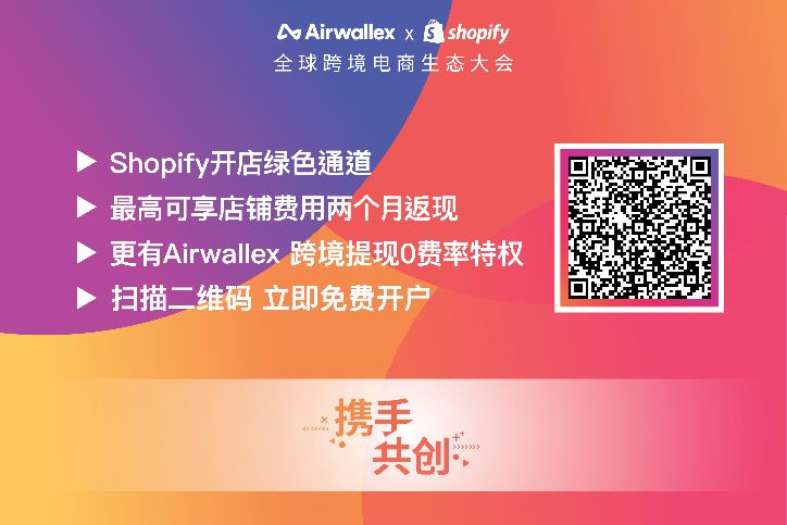 此次合作,Airwallex与Shopify将携手给跨境商家们带来不少实打实的福利,包括Shopify开店绿色通道、最高可享店铺费用两个月返现,更有Airwallex跨境提现0费率特权。