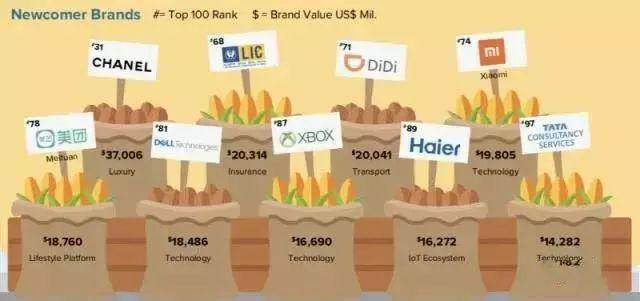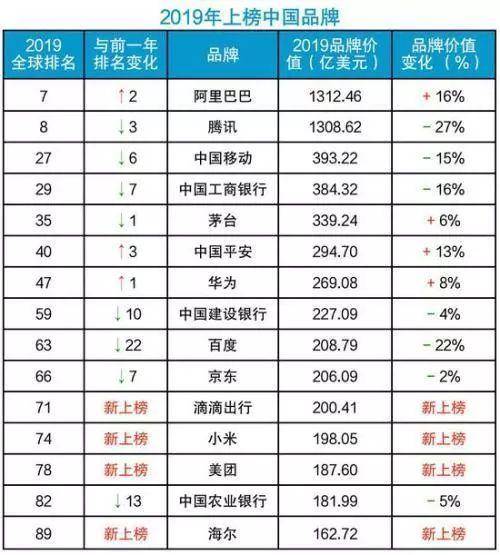科技公司一直占据主导地位。今年,阿里巴巴(1312亿美元)超过腾讯(1309亿美元)成为最具价值的中国品牌。与前一年相比,中国上榜品牌数量从去年的14个增加到15个。