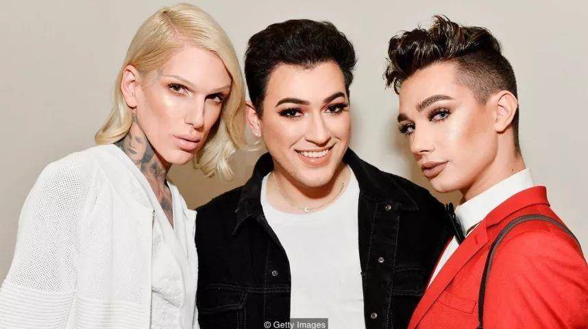 (著名男士美妆博主Jeffree Starr、美妆品牌创始人Manny Gutierrez和 James Charles的合影)