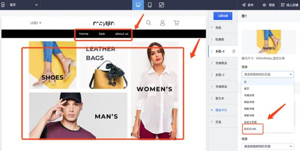 如果给 Shopee 等其他平台引流,也有办法,可以将网站中可点击的地方,设置为外跳链接,店匠使用卡片建站,支持双端相应,操作简单的同时完成品质网站的搭建。