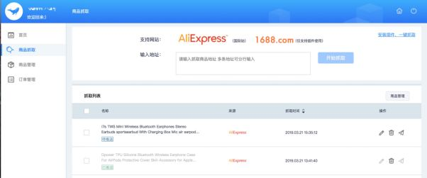店匠的「品集」插件可以帮你一键抓取速卖通、1688上的商品,将商品信息同步到你的店匠后台中进行管理。