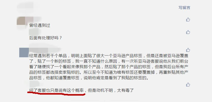 亿恩网了解到,多位卖家都遇到了同样或者类似的事情。一位卖家竟接连遇到2次这样的情况,第一次是覆盖,第二次干脆不覆盖,只有2个标签。发货就按亚马逊贴错的那个发,“好巧哦,好气哦!”