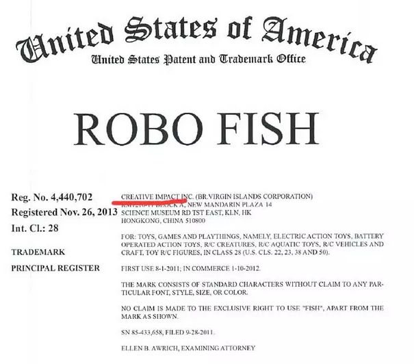 Robo Fish是什么?为何侵权?这里小编再为大家整理一下。据了解,ROBO FISH乐宝鱼是CREATIVE IMPACT INC. & ZURU LLC 旗下的ROBO Alive系列里的产品,是深受小朋友喜爱的热卖玩具。不过值得注意的是Robo Fish早在2013年就已经注册成功了商标。