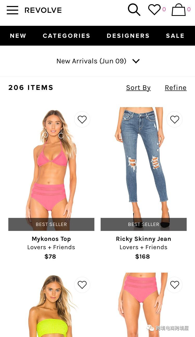 花了4年时间,Revolve上积累了超过1000个潮牌,牛仔裤是其中最受欢迎的系列之一。