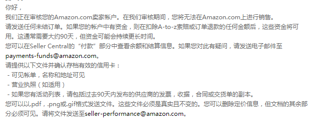 如果卖家怀疑自己收到二审的邮件,一定要先找招商经理确认清楚是否为二审。亚马逊通常会在邮件里列出所需要提交的审核资料,确认以后便可以按照亚马逊的要求提交资料申诉。值得卖家注意的是所提交的资料一定要真实有效,并且账单不是发票,而是公共事业单位如国家电网出具的盖章的,所有带有发票字样为抬头的文件是一律不予通过。如果可以将水电账单和信用卡账单公司地址、法人地址证明同时提交通过率也会更高。