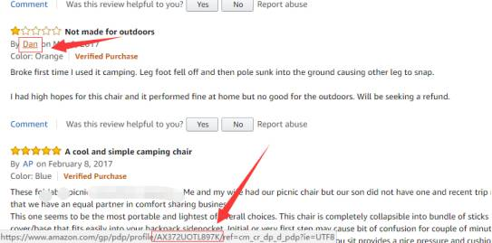 1:首先在对应的listing上找到那个差review,鼠标定位在By后面客户的名字上面,我们可以看到在网页的底下有一个链接profile和ref中间的那一串字符就是buyer ID(如下图所示),找到buyer ID就好办啦。