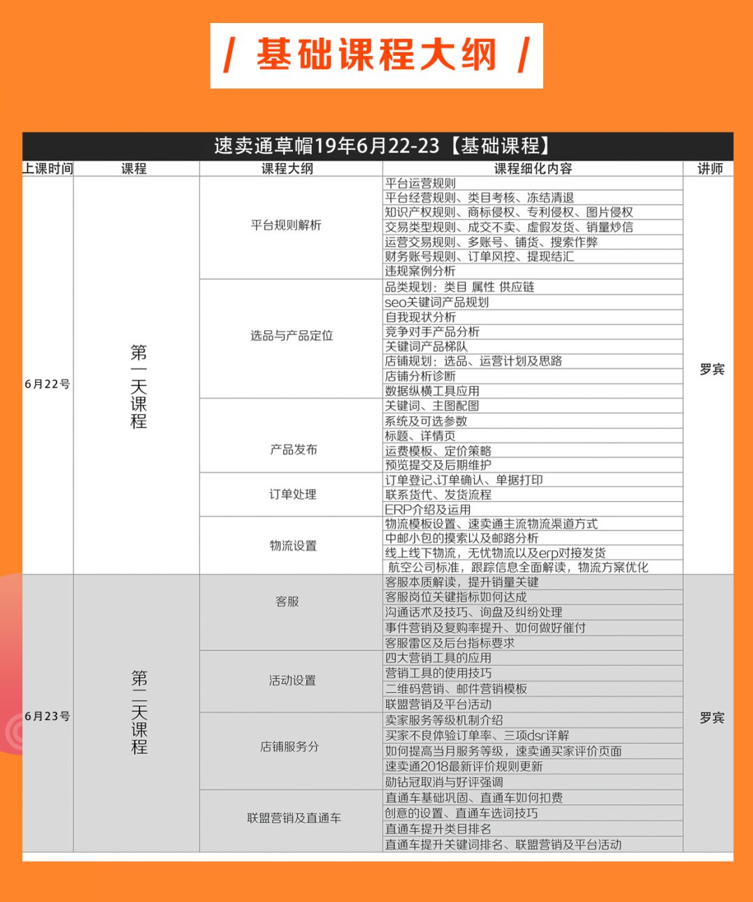 六月22-23两天,草帽有全面的速卖通基础课程,店铺搭建、数据分析,上产品、运费模板设置、活动报名推广等专题课程提升培训课程助力速卖通运营,报名请加草帽微信咨询:13829730042 或点击阅读原文即可报名哦!