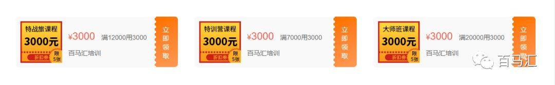 爆款打造特训营、业绩保证大师班、网络教学特战旅,三大课程优惠券3000元!