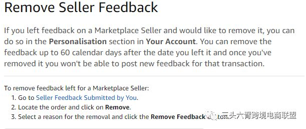 例如,亚马逊英国的买家无法按照以下官方指示删除Feedback,因为这不适用于亚马逊英国。如果可以,卖家请向他们发送删除Feedback所需的链接。