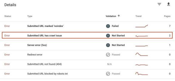 还可以在新版的Google Search Console查看覆盖率报告中的抓取错误。