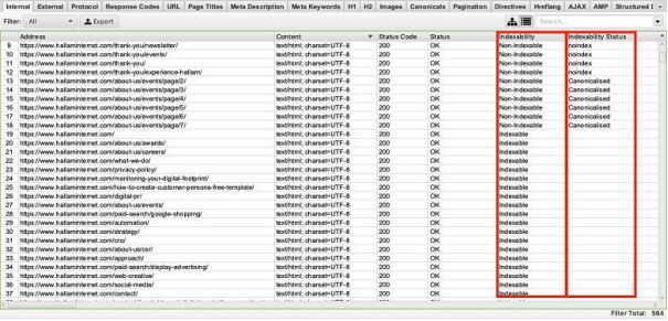Indexability Status:可索引性状态,显示URL不可索引的原因是什么,是不是被编为了另一个URL,或是带有无索引标签。
