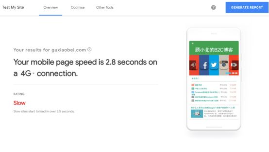 谷歌还有一款工具可以测试移动设备的网速,专门针对移动设备提高网速。